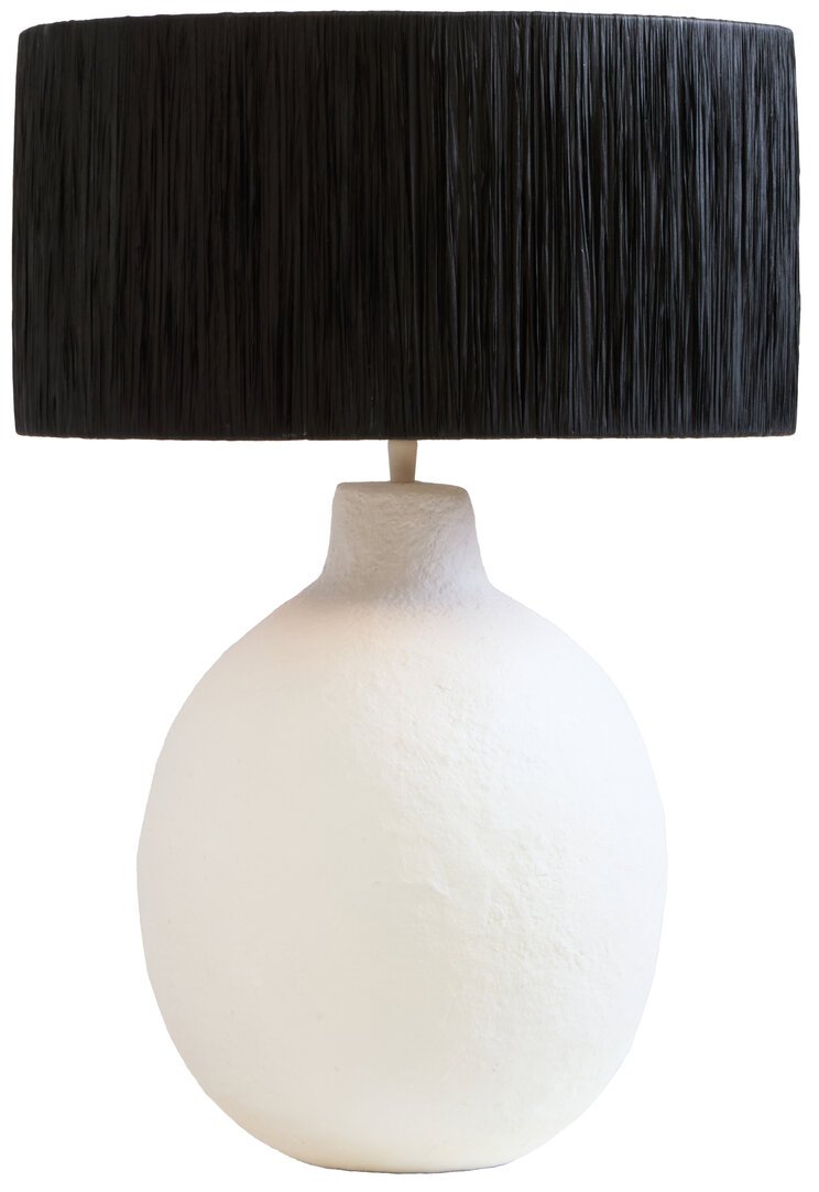 Carta White Papier Mache Table Lamp With Black Raffia Shade