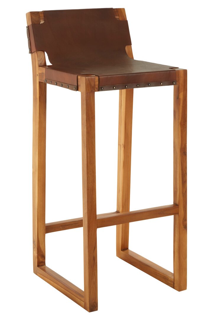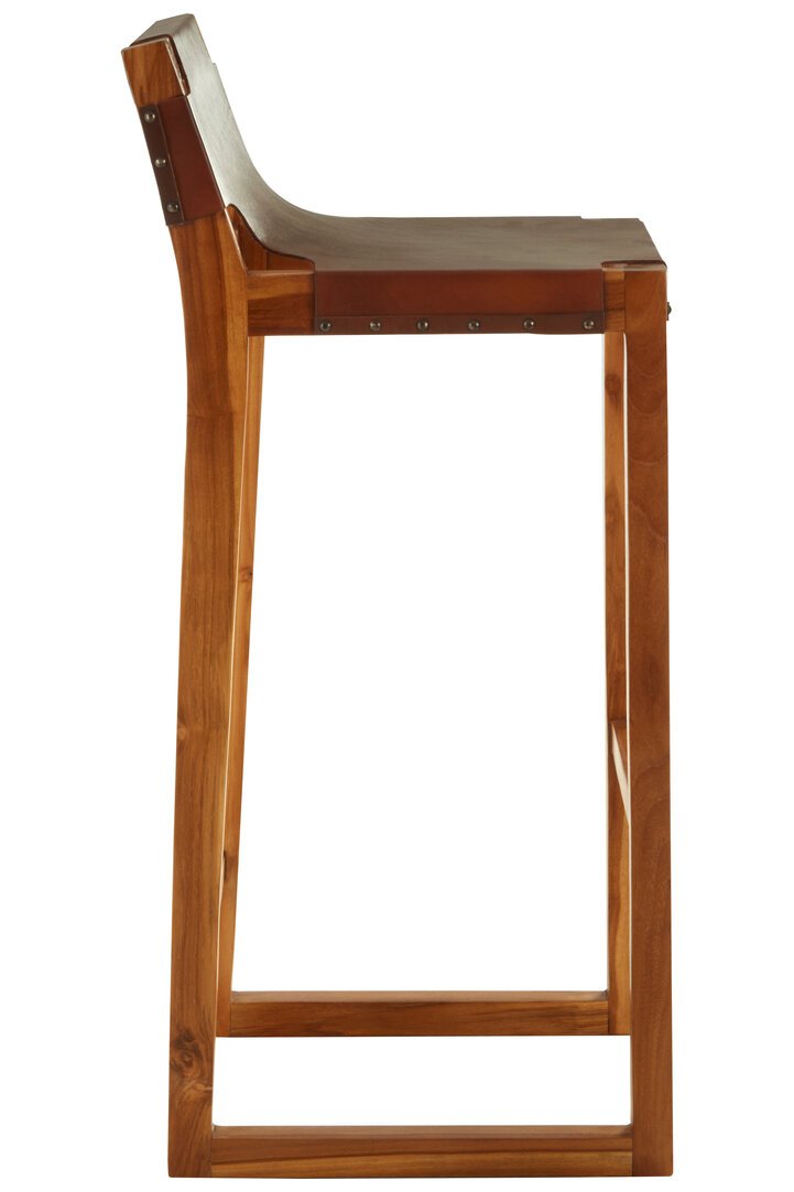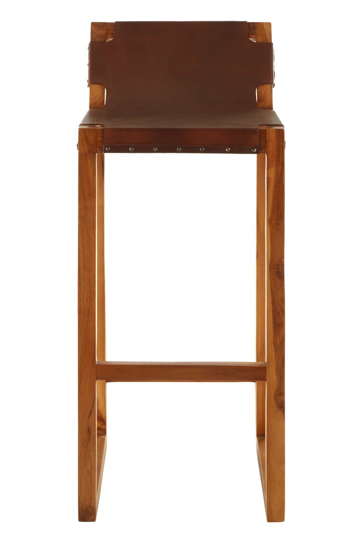 Colonial Brown Leather Bar Chair with Teak Wood Frame