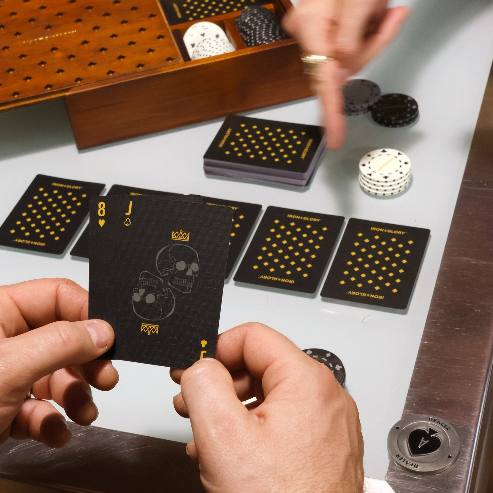 Engraved Ace-of-spades metal dealer chip.