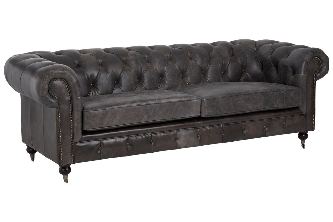 Hugo Dark Grey Brown Leather Chesterfield 3 Seat Sofa